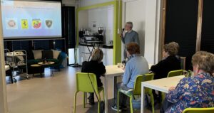 Een gezellige hoeveelheid bezoekers, gezellige mensen die optraden, gezellig meezingen (als je dat wilde), koffie/thee en koekjes, gesponsord door onze lokale AH, sap met een zoutje. Babs en Charles zongen op ons verzoek Nederlandstalige liedjes en dat viel bij veel bezoekers in de smaak. Voorafgaand aan hun optreden, in de pauze en na afloop was er volop gelegenheid om met elkaar te praten, hetgeen met graagte werd gedaan. Kortom: gezelligheid troef!